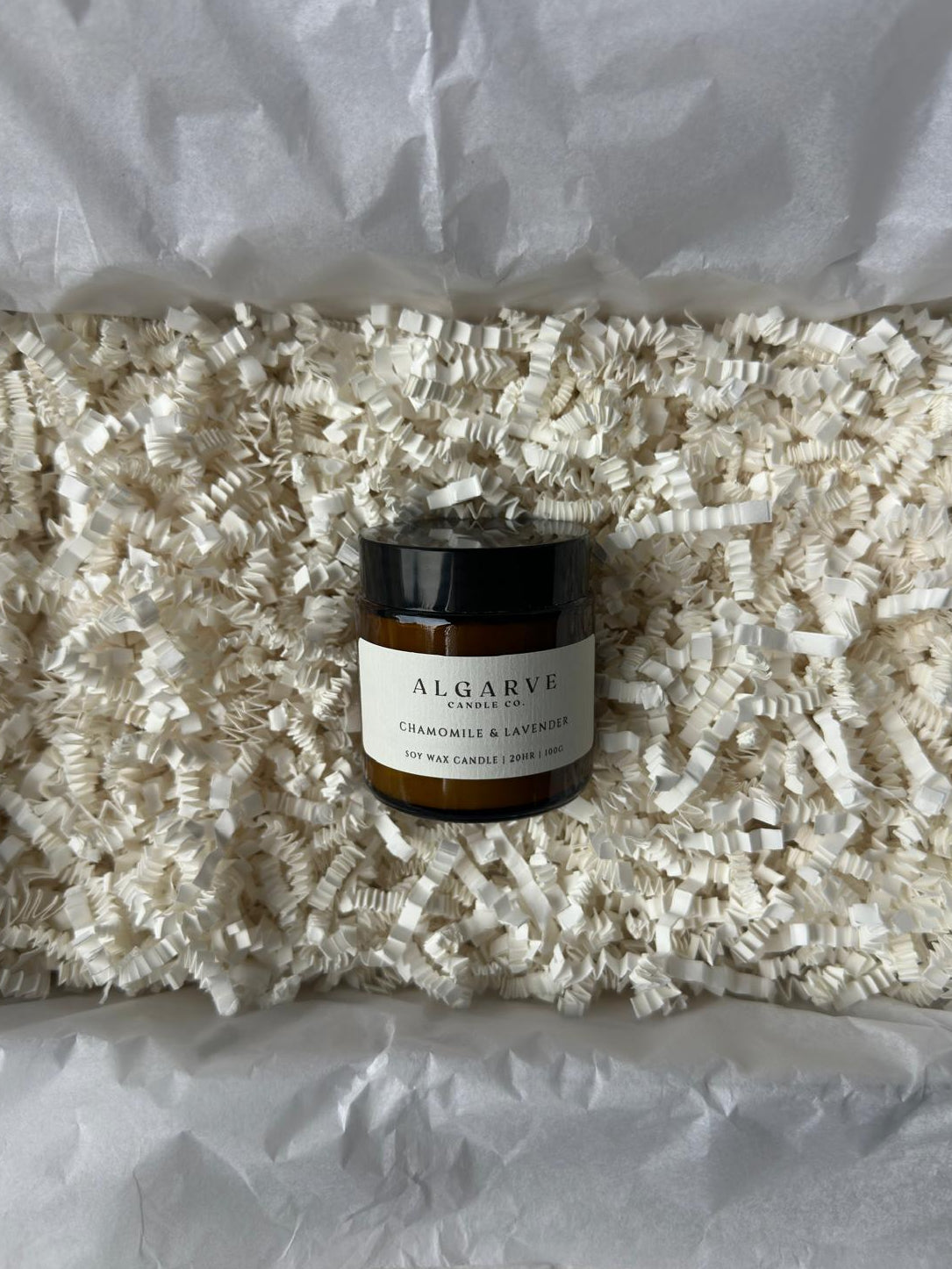 - Vela de Soja (Camomila e Lavanda) – Uma vela suave da Algarve Candle Co., feita à mão em pequenos lotes para trazer luz e tranquilidade a qualquer espaço - a companhia perfeita para momentos de descanso e reflexão.